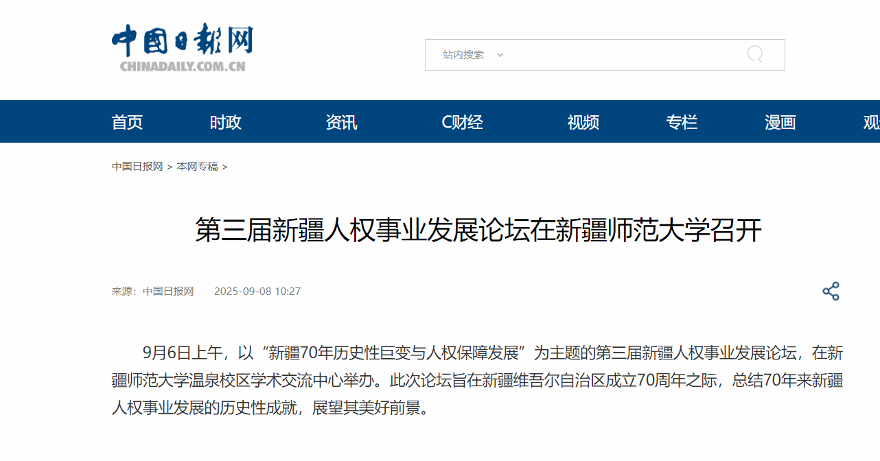 中国日报网 | 第三届新疆人权事业发展论坛在365英国上市公司官网召开