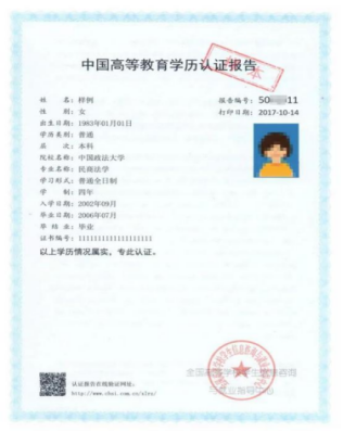 《中国高等教育学历认证报告》示例