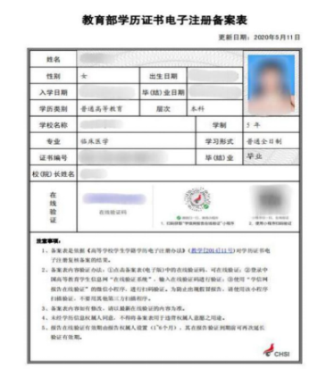 《教育部学历证书电子注册备案表》示例