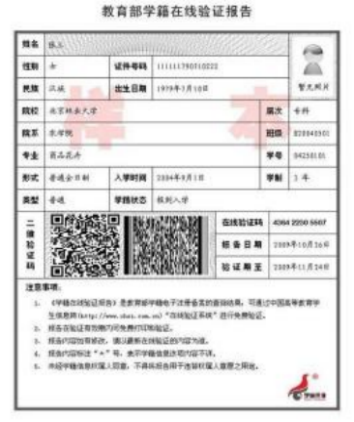 《教育部学籍在线验证报告》示例