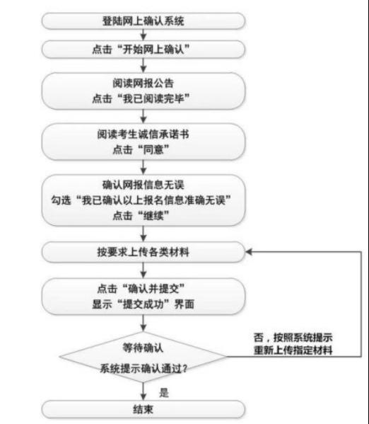 1.考生必须在规定时间内通过网上确认系统,完成本人的“核对网报信息、上传本人准考证照片、身份证照片及其它要求的相关材料”等手续,逾期未确认视为自动放弃,不再补办。