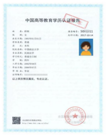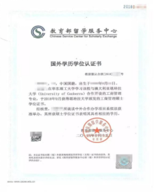《国外学历学位认证书》示例照片