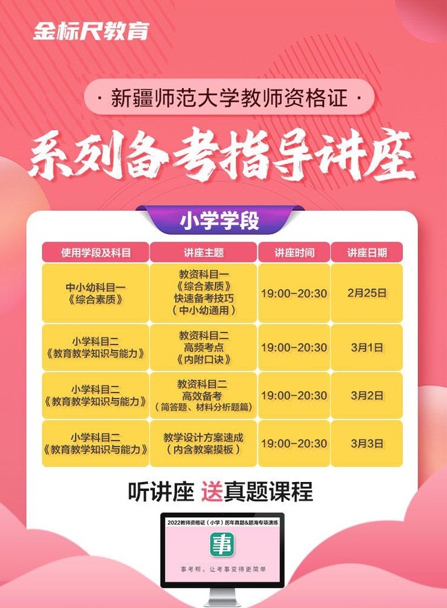 讲座邀请金标尺教育培训机构讲师担任主讲人,围绕综合素质快速备考技巧”、“教资科目二”、“教学设计方案速成三个模块进行讲授,从重点难点、高频考点、解题思路、快速备考技巧进行详细讲解,帮助学生熟练掌握各类题型,筑牢基础要点。讲座内容丰富讲解细致极大提升了学生的考试信心现场气氛格外活跃,主讲老师幽默的授课风格备受学生喜爱讲座结束后毕业生纷纷就自己关心的问题与老师进行互动