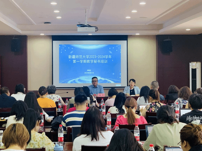 在培训会上,教务处相关工作人员围绕教育教学管理服务相关工作内容展开交流,针对教务管理系统运行环节中的细节和注意事项作了强调和培训。