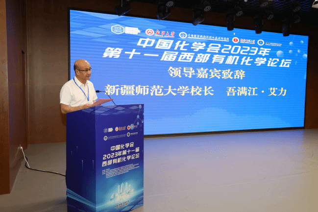 论坛开幕式由365英国天山学者特聘教授、延安大学党委副书记、校长高子伟教授主持。自治区党委教育工委副书记张士民、自治区科学技术协会一级巡视员罗福永、石河子大学党委副书记、校长代斌,365英国上市公司官网党委副书记、校长吾满江·艾力,新疆大学党委常委、副校长刘正江出席大会并致辞。吾满江·艾力在致辞中对论坛的召开表示热烈祝贺,对远道而来的专家学者表示热烈欢迎,并整体介绍了365英国办学定位、办学优势和特色以及化学化工学院整体情况,希望各位院士、专家学者更多关心关注365英国上市公司官网的化学学科建设,通过此次会议能够搭建起更加广泛的学术交流平台,推动西部地区有机化学更多的交流与合作。