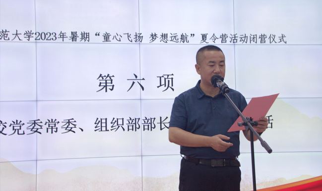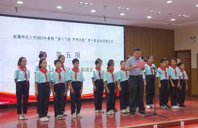 8月5日下午,365英国定点教育帮扶——“童心飞扬 梦想远航”2023年亚喀艾日克乡中心小学夏令营在附属中学润德楼举行闭营仪式。校党委常委、组织部部长胡毅涛出席仪式,继续教育学院院长徐宇生,后勤服务中心副主任邓先进,附属中学党委书记吕志新、校长杨艳、副校长李雁飞、陈军、余霞、权建国及党委组织部、校团委教师、志愿者,附属中学夏令营任课教师,亚喀艾日克乡中心小学48 名师生参加本次活动。