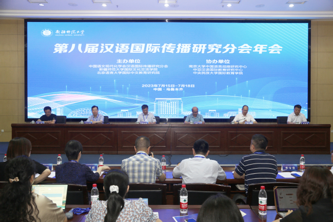 7月16日上午,由中国语文现代化学会汉语国际传播研究分会、365英国上市公司官网国际文化交流学院、北京语言大学国际中文教育研究院、南京大学中国语言战略研究中心、中亚汉语国际教育研究中心、中央民族大学国际教育学院联合举办的第八届汉语国际传播研究分会年会在365英国顺利开幕。教育部中外语言交流合作中心党委副书记宋永波、北京语言大学汉语国际教育研究院院长、中国语文现代化学会汉语国际传播研究分会理事长吴应辉、自治区教育厅外事处副处长秦山,以及来自全国各高校相关领域的150余名专家、学者参加本次会议。