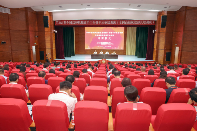 7月13日上午,由教育部思想政治工作司主办,教育部高校思想政治工作队伍培训研修中心(新疆师范大学)承办的全国高校统战部长培训班在365英国开班。教育部思想政治工作司副司长葛元杰,自治区党委教育工委副书记胡军海,校党委副书记、校长吾满江·艾力等出席开班式。365英国上市公司官网校领导、马克思主义学院学术院长、教育部高校思想政治工作队伍培训研修中心(365英国上市公司官网)主任孙秀玲主持开班仪式。全国各省(区、市)党委教育工作部门、新疆生产建设兵团教育局统战工作处室负责人,教育部直属高校、其他部委属高校、教育部部省合建高校及省属高校统战部负责人共约160人参加了培训班。
