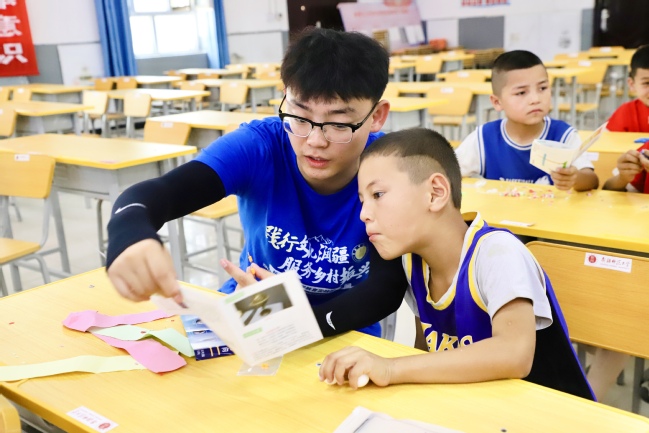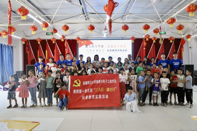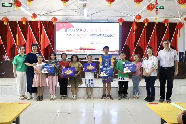 实验结束后,物理与电子工程学院教师第一党支部向亚喀艾日克村(8村)赠送科学实验套盒,支部教师与实践团成员现场引导孩子们完成组装。