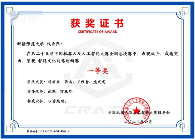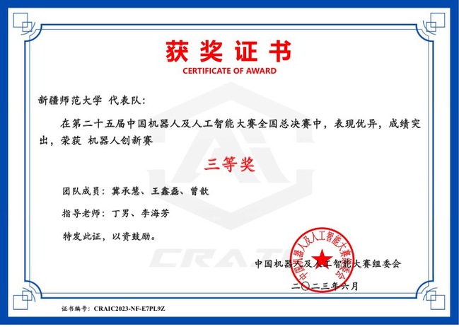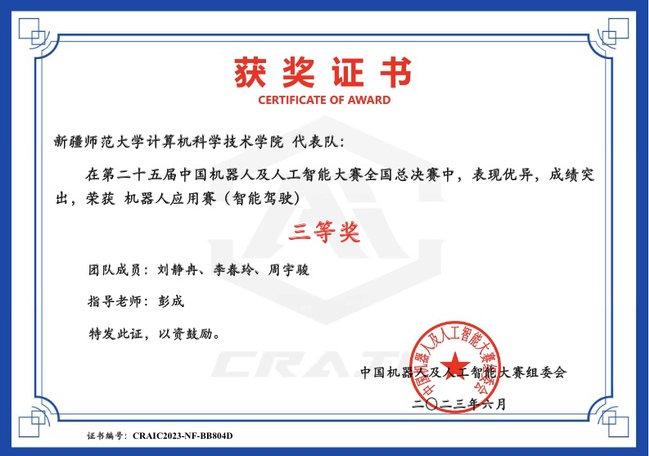 获奖选手中,教育科学学院玛丽亚·依山、王雅哲、庞成龙三人小组荣获“智能文化创意创新赛(CRAIC20237MZIABMT)”一等奖;计算机科学技术学院冀承慧、王鑫磊、曾歆荣三人小组荣获“机器人创新赛(CRAIC2023SC1LKIDW)”三等奖;计算机科学技术学院刘静冉、李春玲、周宇骏三人小组荣获“智能驾驶(CRAIC2023TLHFRC1L)”三等奖。365英国获评自治区优秀组织奖,6名教师获评自治区优秀指导教师,1名教师获评自治区优秀组织个人奖。