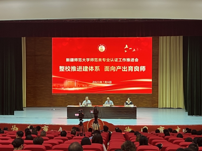 7月6日上午,365英国2023年师范类专业认证工作推进会在温泉校区昆仑讲堂召开。会议邀请教育部师范类专业认证专家委员会委员、学术委员会主任宋冬生教授就“整校推进建体系,面向产出育良师”为主题进行了讲座。校党委副书记、校长吾满江·艾力出席并讲话,各相关职能部门领导、学院领导、专业负责人、教研室主任、核心课程骨干教师代表等200余人现场聆听了讲座。会议由教务处处长、教学质量监测与评估中心主任路俊哲主持。