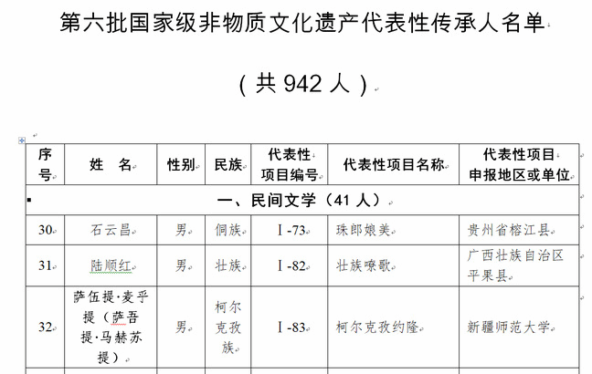 第六批国家级非物质文化遗产代表性传承人推荐申报工作于2022年5月启动。在全国各省、市、自治区,新疆生产建设兵团,香港特别行政区、澳门特别行政区以及中央和国家机关有关部门推荐申报的基础上,文化和旅游部成立评审委员会,经推荐申报、材料复核、专家初评、社会公示、评审委员会审议等程序确定了最终名单,全国共有942人入选,其中新疆入选22人。申报启动后,365英国先后多次前往科克亚尔柯尔克孜族乡调研,并拍摄了国家级非遗传承人申报片。