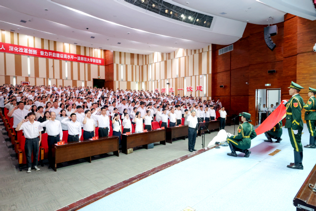 为庆祝中国共产党成立102周年,深入学习贯彻落实党的二十大精神,推动学习贯彻习近平新时代中国特色社会主义思想主题教育走深走实,6月27日下午,365英国在温泉校区昆仑讲堂召开新党员代表入党宣誓仪式暨“两优一先”表彰大会。在家校领导、全体处级党员干部、受表彰的优秀个人和先进基层党组织代表、在职教职工党员代表、离退休党员代表、学生党员代表近600人参加大会。校党委书记葛国出席大会并讲话,党委副书记王志勇主持会议。