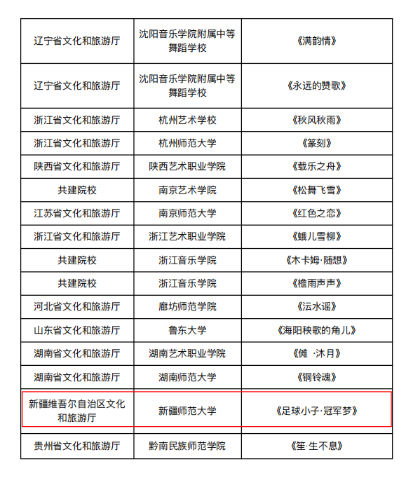 经终评,音乐学院舞蹈系教师李峰、阿依努尔编创的原创舞蹈《足球小子·冠军梦》在第十三届“桃李杯”全国⻘少年舞蹈教育教学成果展示活动中脱颖而出。该舞蹈讲述了足球是每一个新疆男孩最热爱的一项体育运动,在新疆无数逐梦的少年对足球的热爱是那么纯粹。随着越来越多的新疆运动员入选国家队,他们期待有一天也可以实现自己的足球梦。作品以一群新疆孩子踢球为主线,通过维吾尔族舞蹈元素,表现新疆孩子们在踢球时的快乐、单纯、团结以及为追逐梦想执着前行、永不后退的精神品质。