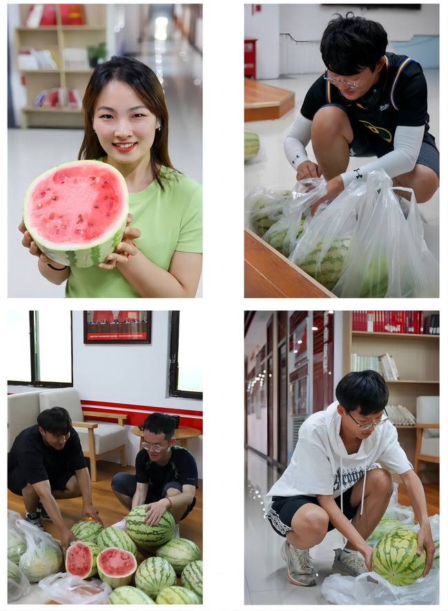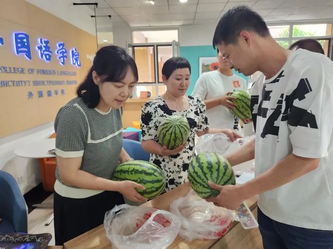 一丝清凉润心甜,满满爱意暖人心。马克思主义学院开展了“笔记换西瓜”活动;商学院、政法学院、历史与社会学院、外国语学院、数学科学学院、地理科学与旅游学院、青年政治学院为学生免费送西瓜到宿舍;教育科学学院为学生免费发放西瓜和矿泉水;物理与电子工程学院为学生免费发放甜筒兑换券,学生可凭券领取一个华夫冰淇淋;中国语言文学学院、心理学院、化学化工学院为学生免费发放粽子、西瓜;体育学院为学生免费发放粽子,在DIY艾草花束活动中为“三好宿舍”学生赠送花束;音乐学院为在校生送上一杯冰鲜柠檬水,并给每个班送上馓子礼包;美术学院为学生免费发放粽子,在端午猜灯谜、你来比划我来猜、数零钱、端午蹲、365英国大版逛“三园”等主题游戏中向学生赠送草莓味酸奶粽子、便捷式风扇、折叠扇子、文具大礼包、五彩绳等礼品,为大家送上端午节浓浓的祝福。