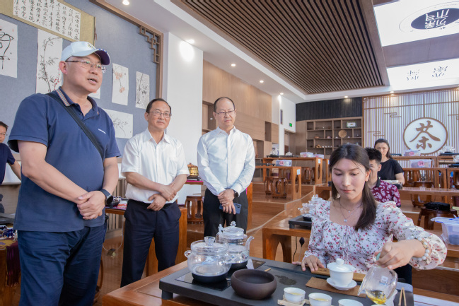 最后,调研组一行来到书法体验室墨香斋和中华茶文化体验室润心堂,观看了留学生现场书法和茶艺表演。