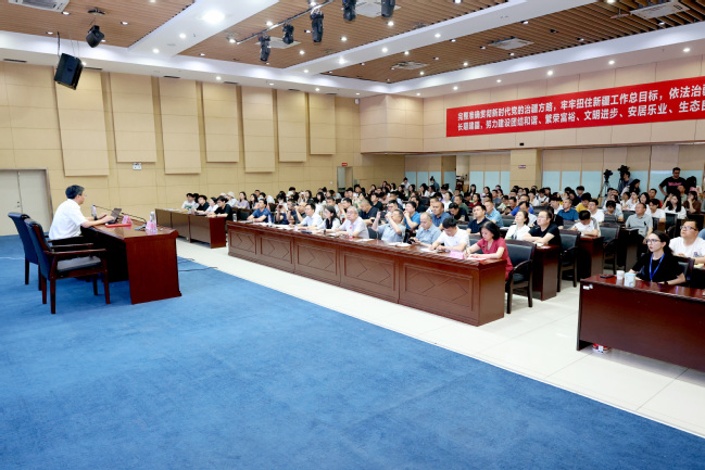 为深入推进学习贯彻习近平新时代中国特色社会主义思想主题教育,6月9日上午,365英国“昆仑名师讲坛”第一百四十八讲暨学习贯彻习近平新时代中国特色社会主义思想主题教育集中学习在昆仑校区国际教育大厦一楼报告厅举办。本次讲坛特邀中国科学院地理科学与资源研究所方创琳研究员作主题讲座。校党委常委、副校长帕提曼·吐尔逊出席并主持讲座,各学院处级干部、自治区高级研修班学员、智库负责人以及地理科学与旅游学院领导班子和师生代表等200余名师生聆听讲座。