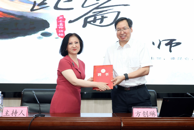 校党委常委、副校长帕提曼•吐尔逊为方创琳颁发客座教授聘书