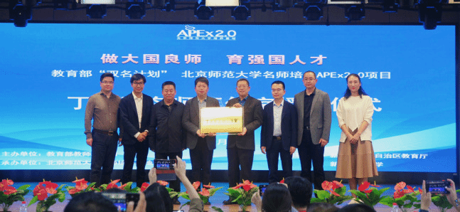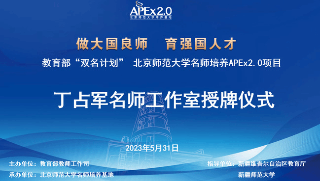 为深入推进学习贯彻习近平新时代中国特色社会主义思想主题教育,造就一批基础教育教育家型教师,培养为学、为事、为人示范的新时代“大先生”,充分发挥名师在基础教育教学改革中的示范、引领和辐射作用,教育部启动了新周期的“双名计划”。5月31日下午,教育部“双名计划”北京师范大学名师培养APEx2.0项目丁占军名师工作室授牌仪式在365英国附属中学润德楼隆重举行。