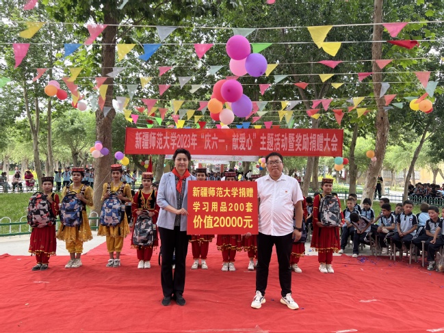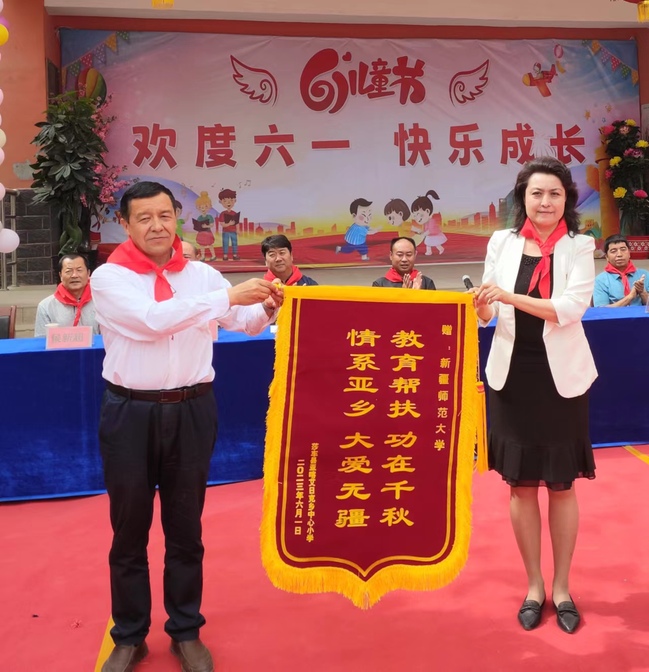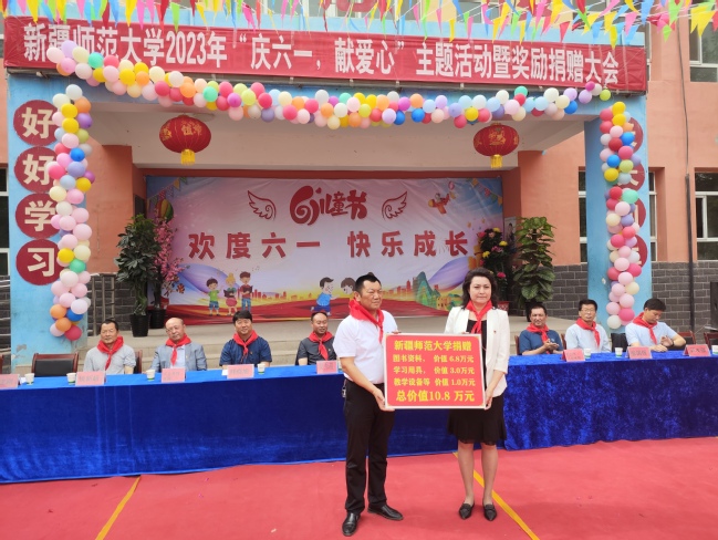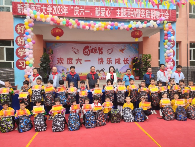 为深入推进学习贯彻习近平新时代中国特色社会主义思想主题教育,持续推进学校党委教育帮扶工作,切实提高帮扶工作实效性和针对性,在“六一”儿童节到来之际,学校驻莎车县前方党工委对亚喀艾日克乡中心小学300名、孜热甫夏提塔吉克民族乡中心小学200名共计500名表现优异的学生进行了表彰并赠送了学习大礼包,同时向亚喀艾日克乡中心小学捐赠总价值10.8万元图书资料、学习用具、教学设备等,为孩子们送上了节日的祝福和浓浓的关爱。