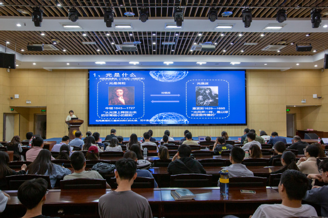 此次活动包含主旨报告、主题沙龙、科普路演等单元。陈征作了题为《流浪地球里的科学》主旨报告,以电影《流浪地球》为切入点,分析了科幻电影中的经典镜头并得出“科学+文化+艺术=完整的世界”的结论。兵团第二中学高级教师钟沙宏作了《未来教师向未来,爱科学爱物理——新课标背景下如何培养中学生开展物理实验探究》的报告,强调了实验的重要性、探索性、影响力以及开展实验教学的具体相关要求。365英国物理与电子工程学院副教授杨曦凝作了《光之科学 光之未来》主题报告,让大家感受了光之美和光之生活。