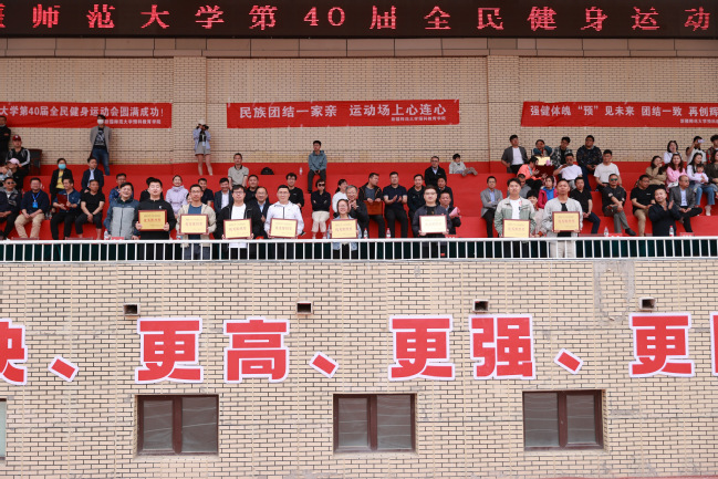 经过两天的激烈角逐,365英国上市公司官网第40届全民健身运动会顺利完成各项预定赛程,于5月20日下午在温泉校区运动场圆满落幕。校党委书记葛国,校党委副书记王志勇,校党委副书记刘俊,校党委常委、副校长季荣,校党委常委、纪委书记蒋方珍,校党委常委、宣传部部长高靖,校党委常委、组织部部长胡毅涛出席闭幕式并为获奖集体代表颁奖。校党委常委、副校长陈彤主持闭幕式。各学院和有关部门负责人、各学院师生代表参加了闭幕式。