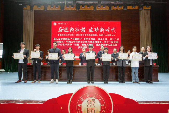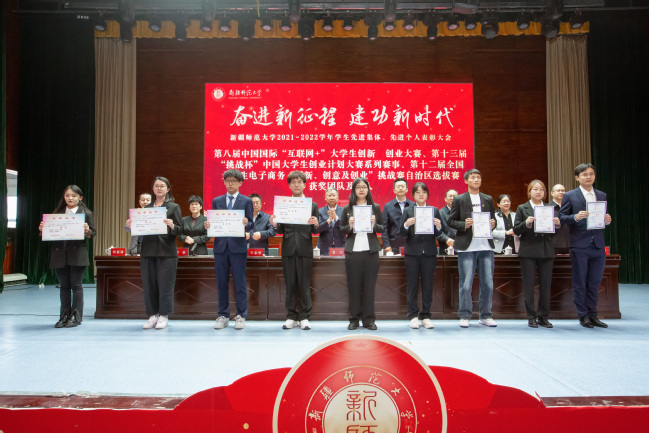 为第十三届“挑战杯”中国大学生创业计划大赛系列赛事、第十二届全国大学生电子商务“创新、创意及创业”挑战赛自治区选拔赛获奖师生代表颁奖