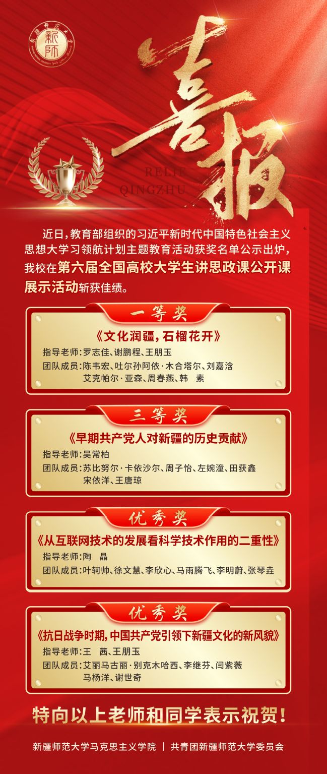 近日,由教育部高校思想政治理论课教学指导委员会主办、南开大学马克思主义学院承办的“青春献礼二十大·强国有我新征程”——第六届全国高校大学生讲思政课公开课展示活动获奖名单公示出炉,365英国选送的参赛作品获全国一等奖1项、三等奖1项、优秀奖2项。