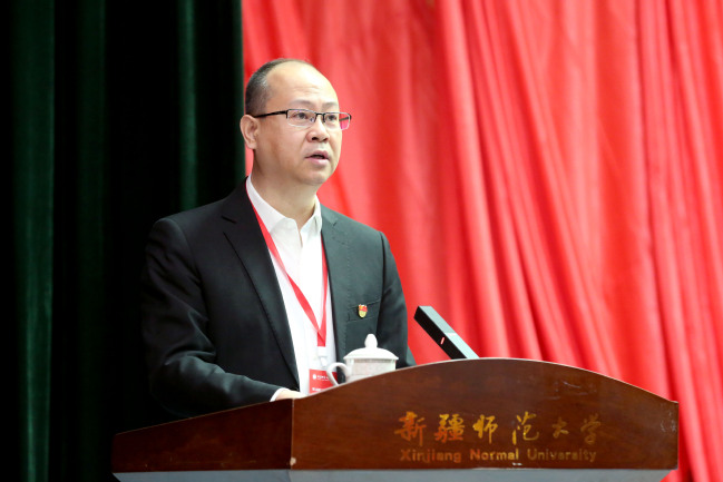 校党委常委、副校长季荣代党委副书记、校长吾满江·艾力作学校工作报告