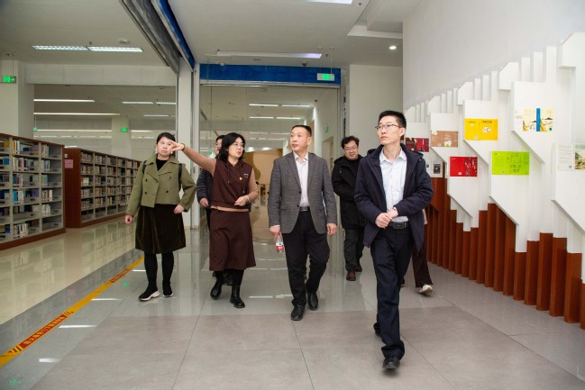谭光明一行还参观了“醉美师大——光影里的奋斗之路”主题图片展和图书馆。图书馆党委书记马晓利、馆长包瑞带领参观了书吧、“学习强国”线下体验空间、公共自习室、智能化平台等,谭光明对365英国图书馆工作理念、空间设计、人性化服务等工作给予了高度评价。