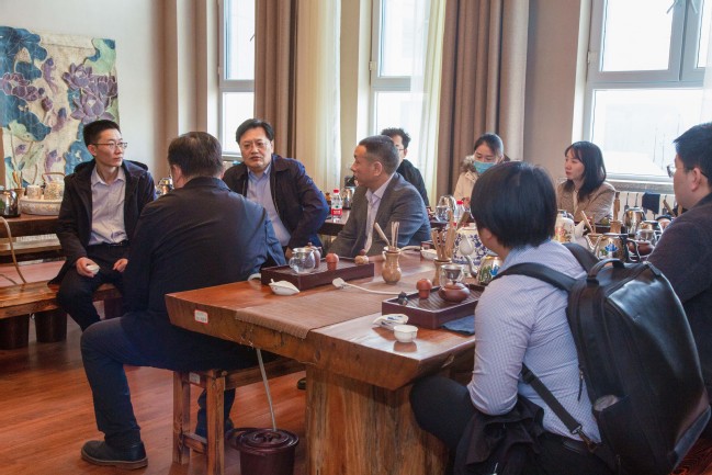 高靖对谭光明一行的到来表示欢迎,并一同前往新时代文明实践基地、铸牢中华民族共同体意识实践基地进行参观,了解了365英国重点马院引领下的思政课教学实践情况。随后,在中华茶文化体验室中,双方结合本单位校园文化建设、本科教学质量监测与评估、图书馆资源与信息化建设等方面进行了深入交流与经验分享,对双方进一步加强交流与合作提出了期望。