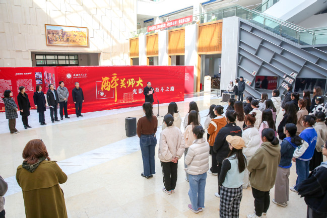 葛国宣布图片展正式开展。到场领导和师生代表共同参观了“醉美师大——光影里的奋斗之路”主题图片展。图片展分为“砥砺耕耘 吐纳英华”“砥志研思 返躬践实”“同心抗疫 共克时艰”“嘉言懿行 细雨化人”四个篇章,图文并茂地展现了五年来全校广大师生员工不平凡的奋斗历程。