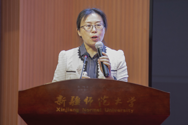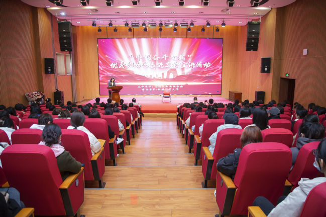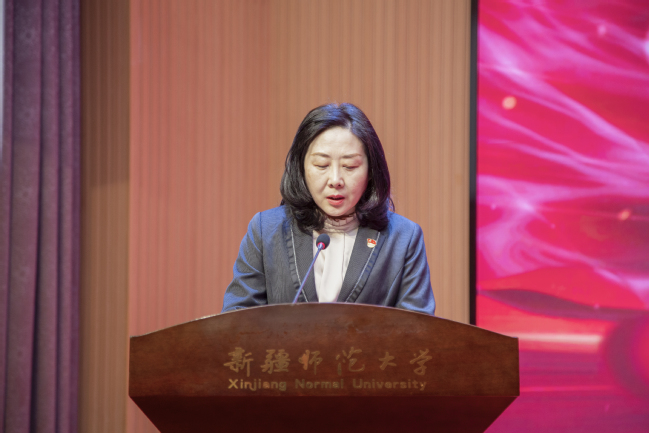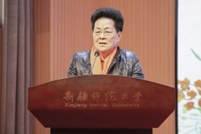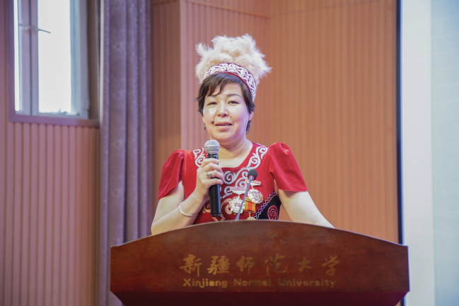 “八千湘女”石榴花巾帼宣讲队队员谢树仁,讲述了自己14岁积极响应党的号召从湖南来到新疆投身边疆建设的难忘经历,勉励女教职工和女大学生珍惜今天的幸福生活,努力提高本领,为实现中华民族伟大复兴而奋斗。