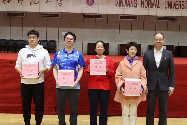 经过一天的激烈角逐,各竞赛项目决出前三名:青年女子组分别为刘华玲(附属中学)、努尔阿米乃(生命科学学院)、吴翠玲(生命科学学院),中年女子组分别为万向丽(图书馆)、岳玉霞(后勤服务中心)、李晶(附属中学),青年男子组分别为张政(心理学院)、许宏业(附属中学)、白希(化学化工学院),中年男子组分别为黄耿青(生命科学学院)、刘华伟(附属中学)、盛晖(外国语学院)。中国语言文学学院、教育科学学院、物理与电子工程学院优秀组织奖,体育学院获优秀承办组织奖。组委会还评出五位优秀裁判员。