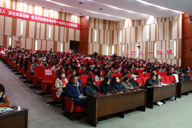 为保障2023年春季学期师范生实习支教工作顺利开展,365英国于3月1日上午在温泉校区昆仑讲堂召开第33批师范生实习支教动员大会。校党委常委、副校长陈彤出席会议,教务处处长孟繁胜,历史与社会学院、教育科学学院、中国语言文学学院等10个学院的副院长、师生代表及24名实习支教带队教师参加会议,其余支教师生在三校区通过线上参会。会议由教务处副处长姜玉琴主持。
