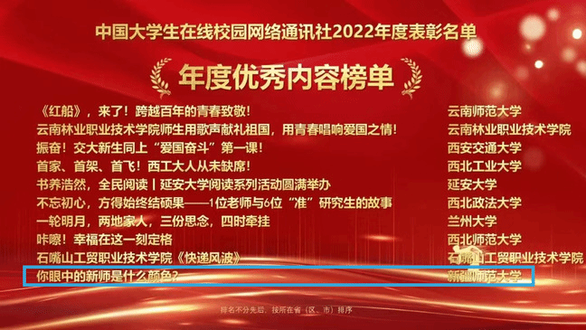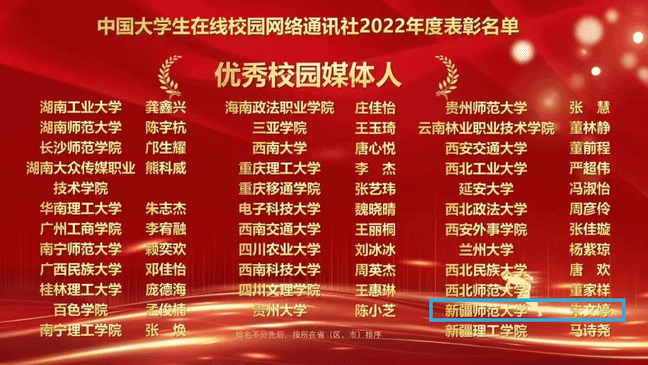 近日,教育部中国大学生在线公布了中国大学生在线2022年度校园新媒体表彰名单、2022年度校网通站及校园行活动表彰名单。