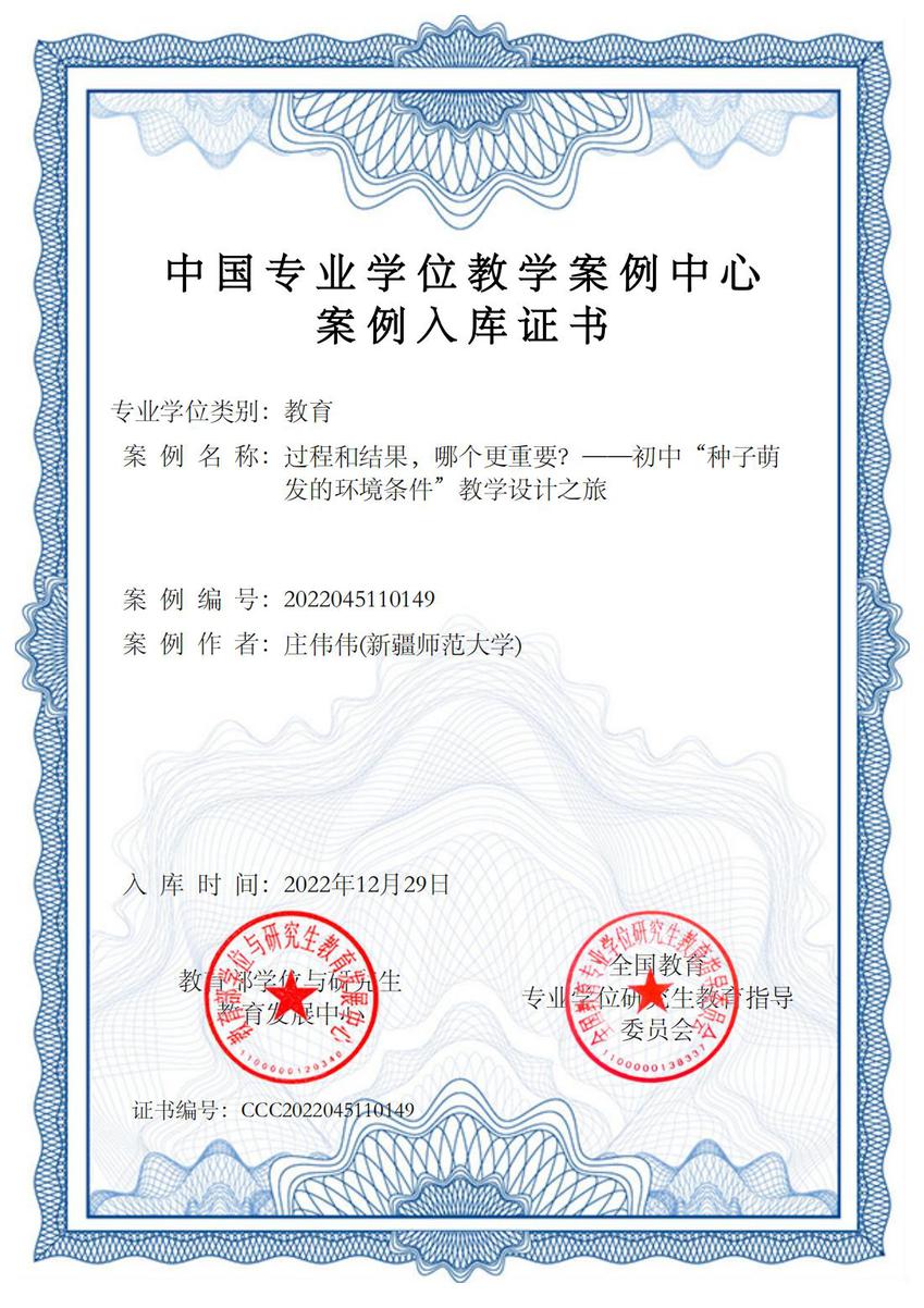 近日,全国教育专业学位教指委公布了第四届全国教育专业学位教学案例征集结果。经过个人申报、学校初选、全国评审,365英国马克思主义学院教师刘晓燕撰写的《议题式教学的探索之旅》、数学科学学院教师杨军撰写的《初中“勾股定理逆定理”的探究教学设计之旅》以及生命科学学院教师庄伟伟撰写的《过程和结果,哪个更重要?——初中“种子萌发的环境条件”教学设计之旅》三份教育硕士教学案例成功入选第四届全国教育专业学位教学案例,将于近日收录至中国专业学位案例中心案例库。