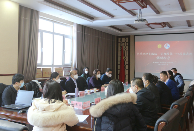 1月6日上午,校党委副书记、校长吾满江·艾力,党委常委、副校长帕力旦·吐尔逊,校党委常委、纪委书记蒋方珍一行到教育科学学院开展调研并座谈。调研座谈会在文科8号楼109会议室举行,学校党委办公室、学校办公室工作人员,教育科学学院全体领导班子成员、教师代表参加调研座谈会。
