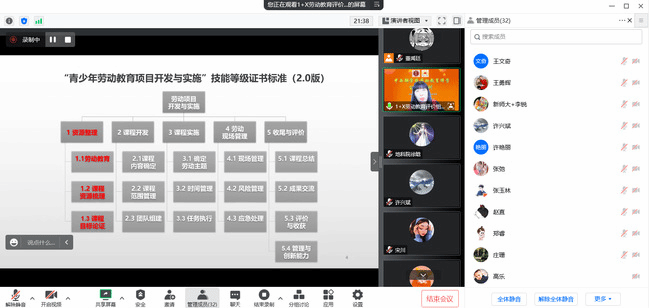 培训课程首先由国际项目管理协会IPMA中国青年委员会CYC副主席、国际项目经理IPMP评估师、教育部1+X职业技能等级证书培训评价组织负责人郭雅对劳动教育与职业教育、1+X技能证书政策背景进行解读。教学过程中劳动教育1+X技能证书考评督导马旭晨解读劳动教育的理论内涵及1+X证书标准。
