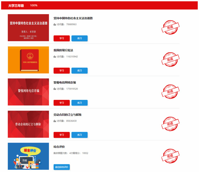 学生完成学习内容和综合评价