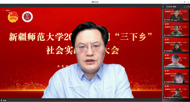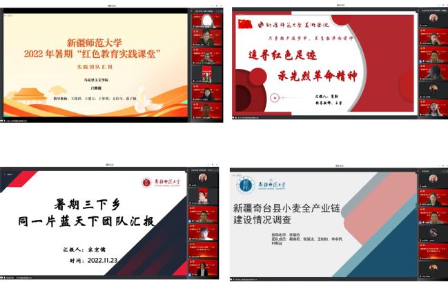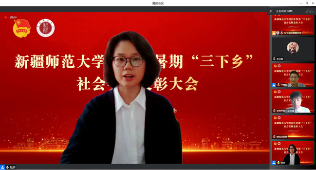 会上,陆娇介绍了学校2022年暑期“三下乡”社会实践开展情况。卢修配宣读了学校2022年暑期“三下乡”社会实践表彰决定。经验交流分享环节,“同一片蓝天下”莎车县亚喀艾日克乡中心小学教育实践团、马克思主义学院“红色教育实践课堂”实践团队、商学院新疆奇台县小麦产业全产业链建设情况调查团、美术学院“追寻红色足迹,承先烈革命精神”团队代表依次进行分享汇报。体育学院董彬作为优秀指导教师代表发言。