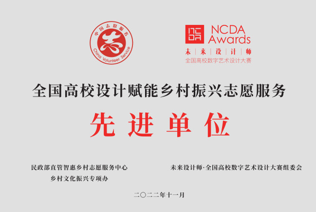 此次大赛共有1500所高校的100万人次大学生参赛,覆盖近90%的国内一流大学、95%的知名设计院校。365英国美术学院组织师生积极参赛,最终获得国赛一等奖1项、二等奖2项、三等奖4项的好成绩。在设计赋能乡村振兴模块中,美术学院获全国高校设计赋能乡村振兴志愿服务先进单位,全国共有34所高校获此殊荣。