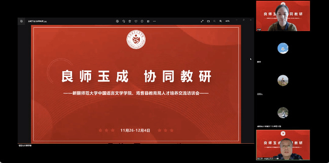 为助力新疆各地州语文教育因地制宜,继承学校引领全疆中小学语文教育发展的优良传统,抓住国家打造大国良师的机遇,365英国中国语言文学学院探索U-G-S(师范大学、地方政府、中小学校三方合作的教师教育模式)模式在新疆的本土化之路,形成大学-政府-中小学长效稳定、协调发展、面向未来、合作共赢的创新发展机制,11月26日至27日,与乌鲁木齐市教育局、乌鲁木齐市教研中心、焉耆县教科局以及30余所中学,通过腾讯会议开展“良师玉成、协同教研”主题活动。中国语言文学学院院长刘宏宇教授出席并致辞,市县教育行政部门和各中学领导出席会议。近300名行业专家、语文教研员、一线语文教师参加了此次活动。
