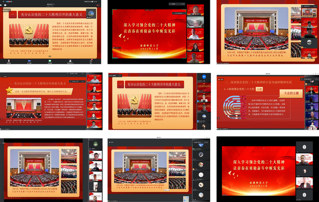 这是一堂干货满满、精彩纷呈的思政课。校领导们在思政课讲授中,围绕“充分认识党的二十大胜利召开的重大意义”“深刻领会党的二十大精神的丰富内涵和精神实质”“让青春在踔厉奋发、勇毅奋斗中绽放绚丽光彩”三个方面,深刻阐明党的二十大的重大意义和深远影响,深入阐述过去5年的工作和新时代10年的伟大变革,深入解读党的二十大精神的精髓要义和核心内涵,并强调,全校师生要全面学习、全面把握、全面落实党的二十大精神,自觉把思想和行动统一到党的二十大精神上来,把智慧和力量凝聚到党的二十大的目标任务上来,迅速把学习宣传贯彻党的二十大精神推向高潮。师生们在线上认真聆听,互动环节大家踊跃发言、积极提问,结合专业分享了学习党的二十大精神心得体会。