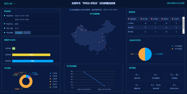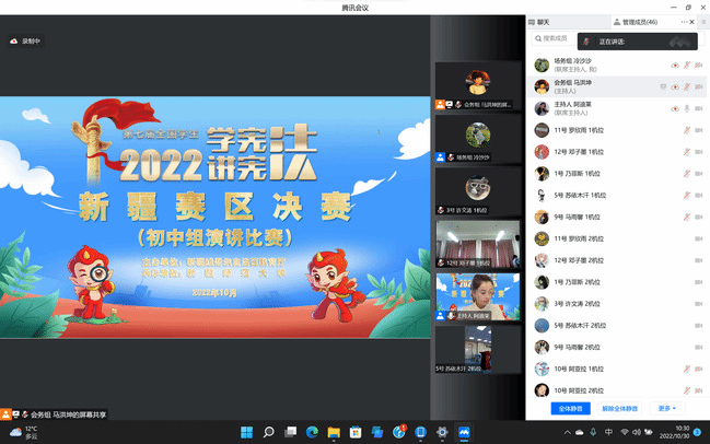 受疫情影响,本次比赛全程以线上形式开展。知识竞赛特别引入第三方公司,采用线上答题的方式进行;演讲比赛则通过线上会议分学段开展。为确保比赛公平公正,所有比赛均采用双机位方式开展,评委专家由来自南北疆中小学教师和各高校专家组成。在主办方的精密组织下,选手们在线上展开精彩角逐。在知识竞赛中,参赛选手在限定时间内,展开激烈的智力比拼;在演讲比赛中,参赛选手从自身出发,结合参赛题目与身边的法治故事,将宪法故事娓娓道来。