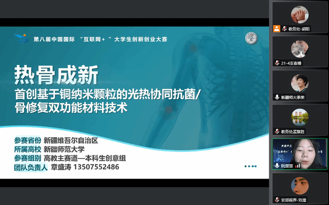 进入本届大赛总决赛现场赛的学生负责人刘滢、阮楚楚对所负责的项目“安邦视界——面向隐私保护的行人重识别领航者”和“热骨成新——首创基于铜纳米颗粒的光热协同抗菌/骨修复双功能材料技术”以路演的形式进行了汇报。化学化工学院王英波教授、计算机科学技术学院李勇副教授作为入围项目指导教师相继做了表态发言,表示将继续按照学校党委指示,拿出饱满的精神,带领学生做好项目的进一步打磨和优化,争取在总决赛中取得更好成绩。