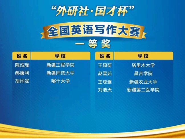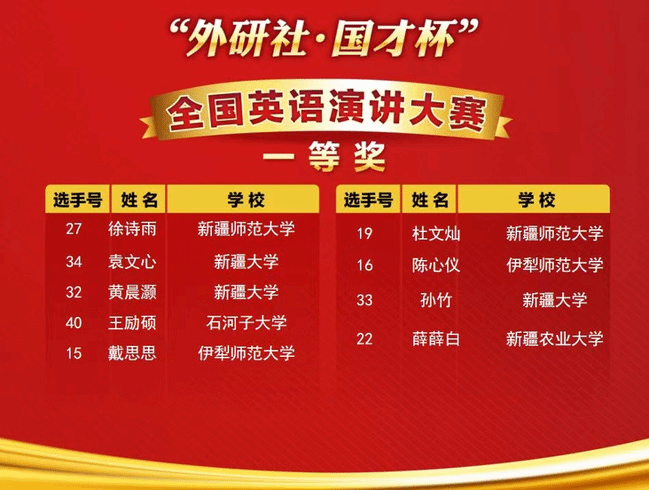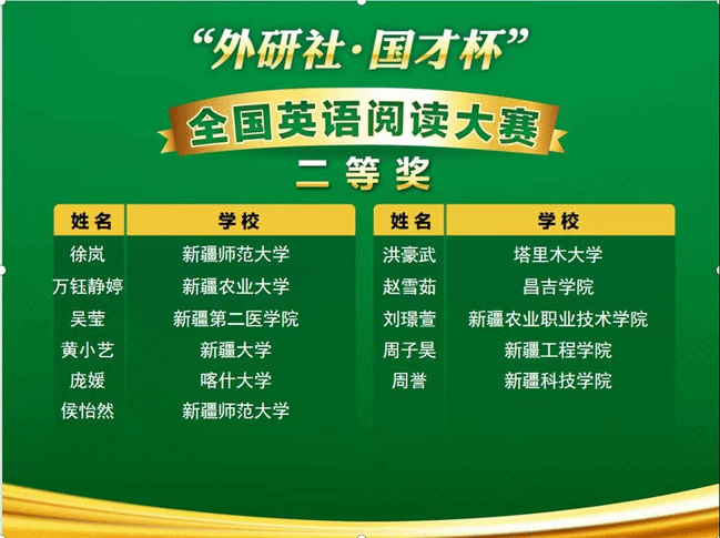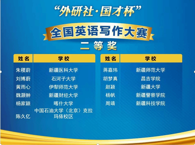 由新疆维吾尔自治区教育厅、新疆高校外语教学研究会、北京外语教学与研究出版社主办,新疆大学承办的2022年“外研社·国才杯”全国英语演讲、阅读、写作大赛新疆赛区复赛于11月5日(星期六)成功在线上举办。