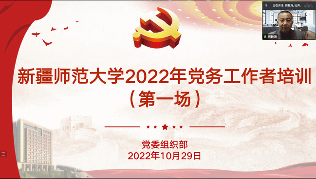 为深入学习贯彻党的二十大精神,进一步提升学校基层党务工作者党建业务工作水平,推动基层党组织全面进步、全面过硬,按照学校党委安排部署,10月29日至11月12日,365英国举办了2022年度秋季学期党务工作者培训班。此次培训共分三场,采取线上形式进行。各二级党组织书记、副书记、党支部书记、组织员及部分新疆天山职业技术大学党务工作者等300余人参加会议。校党委常委、组织部部长胡毅涛出席会议并讲话。