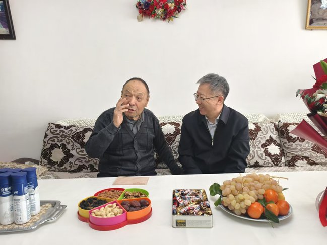 根据安排,校党委副书记、校长吾满江·艾力,校党委副书记王志勇也分别看望慰问了多位老同志。在原副校长张梦麟的家中,看到张梦麟身体健康、精神矍铄,吾满江·艾力十分高兴,仔细询问了张梦麟的饮食起居和日常娱乐活动,叮嘱鼓励老同志保重身体,享受生活。王志勇在慰问中与老同志及其家属亲切交谈,详细了解他们的身体状况和生活需求,鼓励他们保持乐观心态,并为他们送上新春祝福。