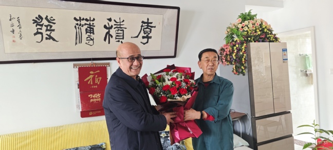 冬日暖阳,温情满溢。在原校党委书记张海峰的家中,校党委书记葛国与张海峰亲切握手,两人促膝而谈。葛国详细介绍了过去一年里学校在改革发展和稳定方面所取得的显著成就,亲切询问张海峰的生活情况。在得知张海峰身体状况良好后,葛国对随行的工作人员就老同志的服务管理、医疗保障等工作提出具体要求,并向老同志送上鲜花和慰问品。张海峰表示,看到学校发展得越来越好,打心眼里高兴,只要学校有需要将尽己所能发挥作用。在原校长阿不力克木·阿吉和老教授阿不力孜·木沙家中,葛国与他们亲切交流,倾听他们对学校发展的建议,现场气氛温馨而热烈。